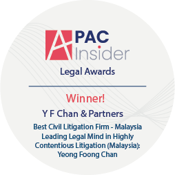 Y F Chan & Partners is honoured to be awarded and shortlisted as one of the best litigation firm in Malaysia by APAC Insider in APAC Legal Awards 2022. Besides, YC is honoured to be added by British Publishing House in the Encyclopedia Book titled Successful People In Malaysia for Fifth Edition.